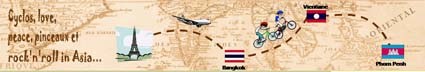 Cyclos, love, peace, pinceaux et rock'n'roll in Asia 4 mois en Asie à vélo par Anne, cousine de Sébastien, et son compagnon, Chris. Site en français |