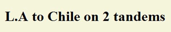 L.A to Chile on 2 tandems Nous avons rencontré Ciska et Mickaël, et leurs 2 fils, Jesse et Sammy à Panajachel (Guatemala). Ils sont partis de Los Angeles et vont à Ushuaia. Site en anglais |