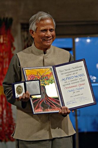 Le professeur d’économie bangladais Muhammad YUNUS a énormément contribué au développement de la microfinance et a obtenu à ce titre le prix Nobel de la paix en 2006. Lors de la remise de ce prix, le président du comité Nobel, Ole Danbolt Mjoes, a déclaré : « Une paix durable ne peut pas être obtenue sans qu'une partie importante de la population trouve les moyens de sortir de la pauvreté ».